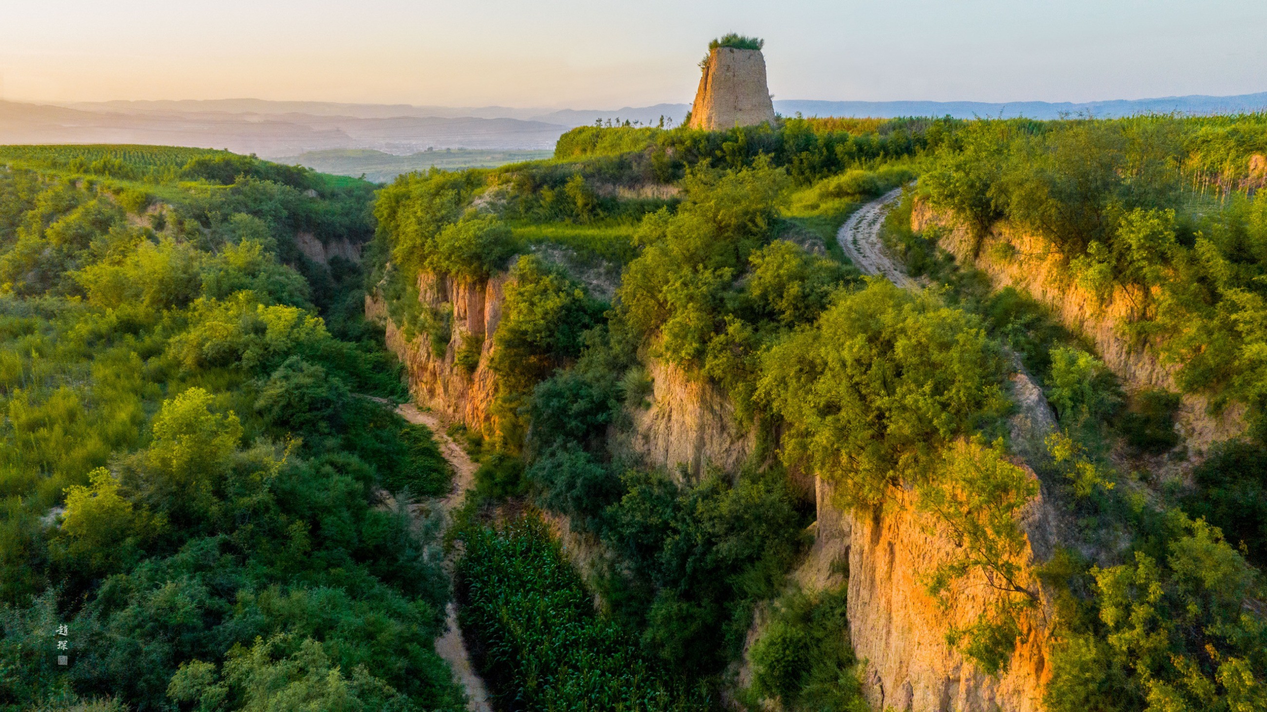 烽燧下面的古驛道是南通長(zhǎng)安北至雁門(mén)關(guān)的古絲綢之路。從太原經(jīng)平型關(guān)、雁門(mén)關(guān),可以西去大漠,當(dāng)年漢代昭君出塞走的就是這條路。